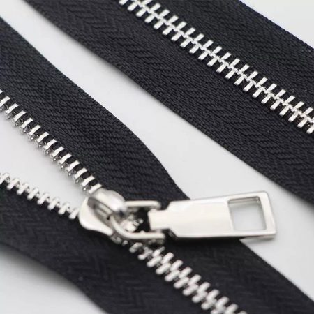 #5 Open-End Metal Zippers with Silver Teeth & Titanium Alloy Y-Teeth, Custom Sliders for Jackets & Apparel