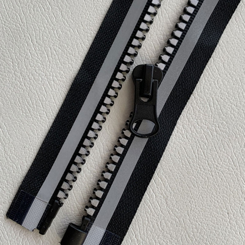 DAYA reflective resin zippers combine strong resin teeth with reflective tape technology, ensuring durability, smooth performance, and enhanced night visibility. Perfect for sportswear, outdoor gear, travel bags, safety uniforms, and fashion apparel, they deliver both function and style.
