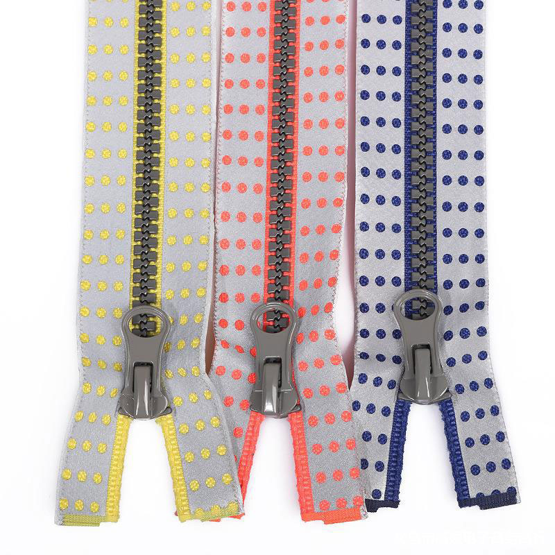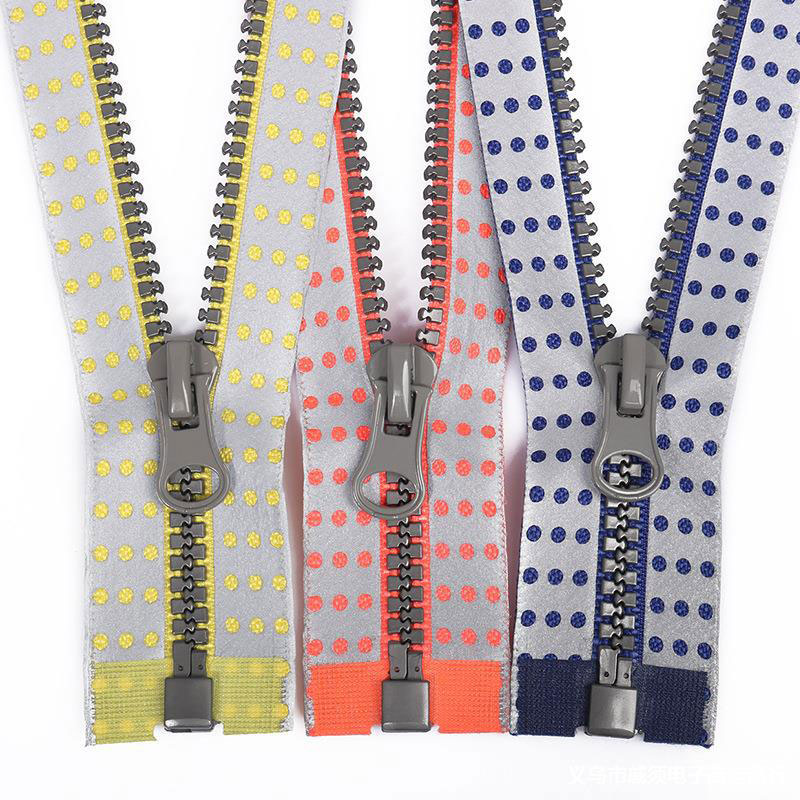 No. 5 Resin Zipper, Waterproof Color Round Hole Reflective Film Open End Zipper, Luggage Clothing Jacket Zipper